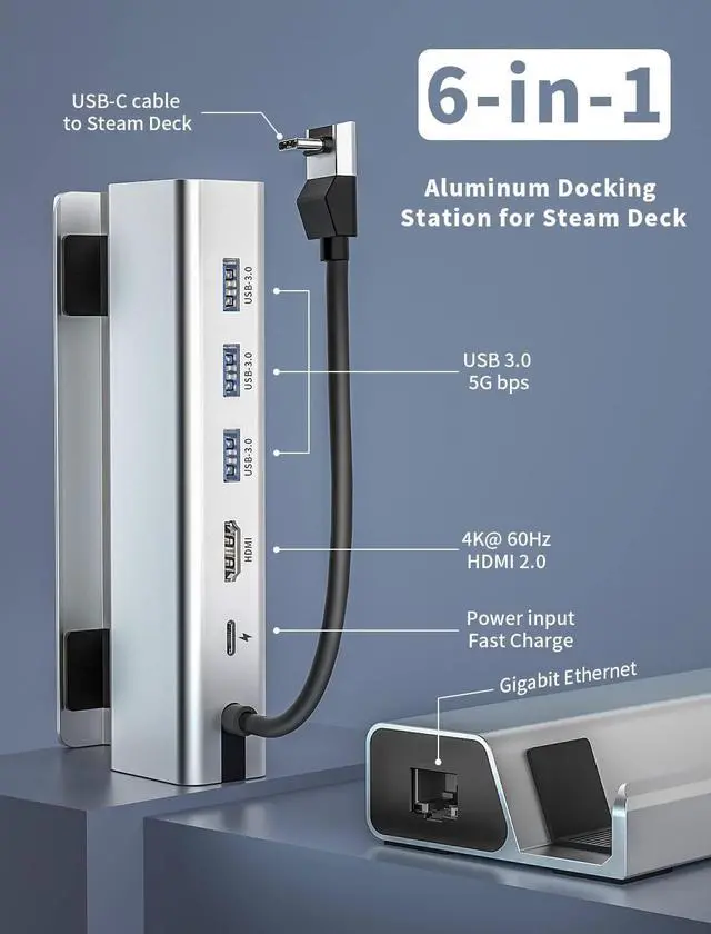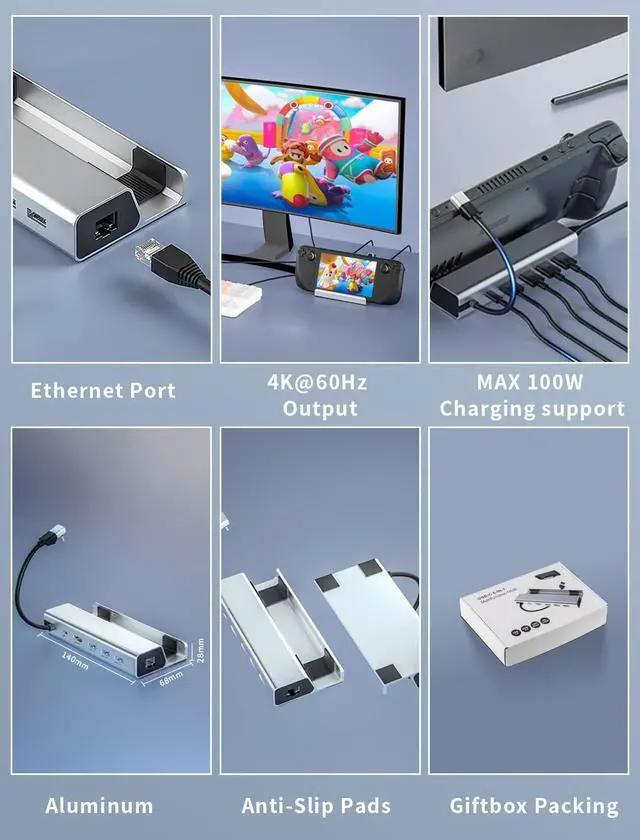 Wide Compatibility, the Docking Station is specially designed for the Steam Deck, but it also compatible with iPads and Android phones other gaming device with USB-C ports. 3xUSB-A 3.0 will let you acess to controller, keyboard and mouse etc, enjoy desktop mode and PC games.