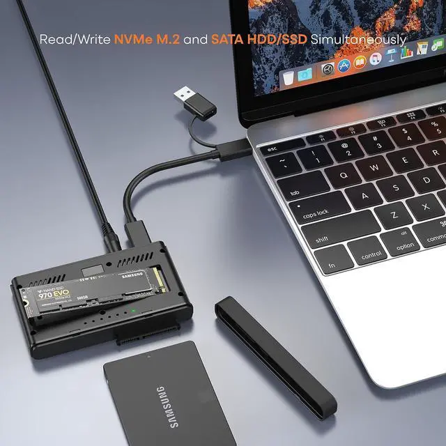 Widely Compatibility: Alxum NVMe M.2 to SATA adapter support for sizes 2242/2260/2280 of M.2 SSD and 2.5"/3.5" SATA HDD/SSD hard drive hard drive, Equipped with 2 IN 1 USB A to Type-C and Type-C to Type-C data cable,compatible with Windows/Unix/Linux/Mac/Android systems.This m.2 to usb adapter caters to various storage needs, making it an excellent choice for power users and gamers alike.