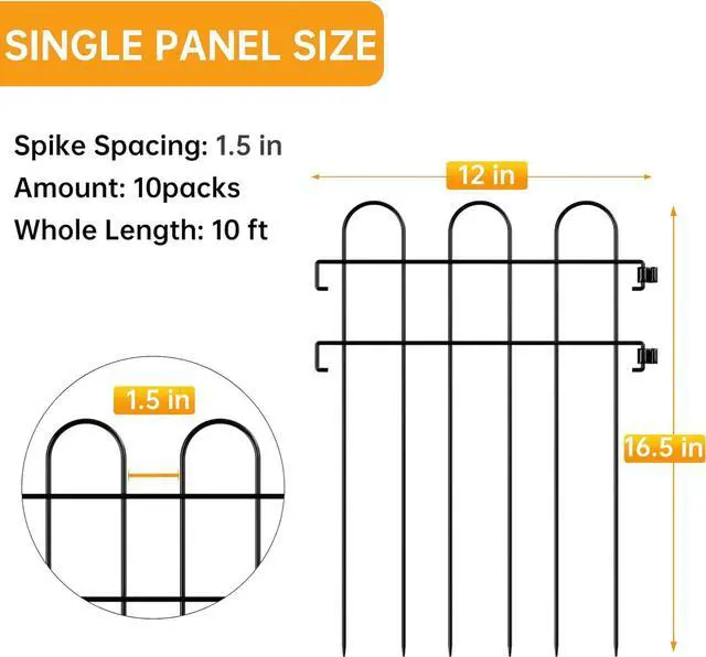 • 10-PACK FENCE PANELS: each fence panel is 16.54" high and 12" wide, with a total length of about 10ft. Our Sunexinlo no dig garden fencing with smaller gaps ensures the security and privacy of your property by keeping out "intruders".