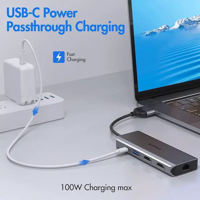 1 * 100W PD Port: Charging for your MacBook Max power consumption up to 100W.