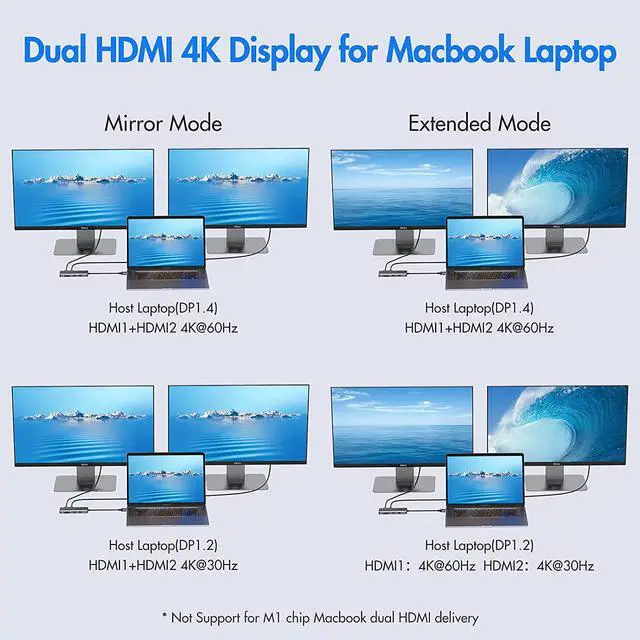 Extend : HDMI 1 4K@60Hz + HDMI 2 4K@30Hz DP1.2