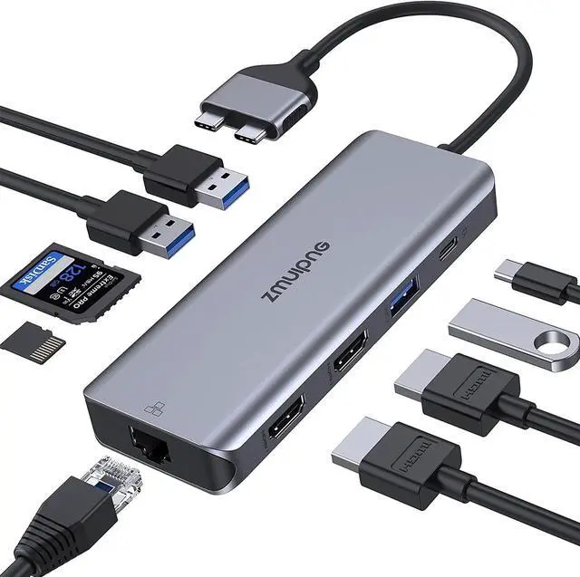 USB C Hub for MacBook/Dell... What makes our products unique? Are our products high quality? zmuipng zmuipng Technical DetailsAdditional Information Feedback Website (Online)Store (Offline) MacBook Pro Docking Station USB C Dual Monitor HDMI Adapter for MacBook Pro Air 13 15 16 Inch 2021 2020 2019 etc. 9 in 2 USB C Dock Dongle for MacBook Pro and MacBook Air. Dual 4K HDMI connection Expand two TDB 3 into 9 ports Developed for MacBook Pro / Air MacBook Pro Air docking station with USB port, PD port, SD card reader. 2 * USB 3.0 & 1 * USB 2.0 port SD & Micro SD key Immediate charging with 100 W PD