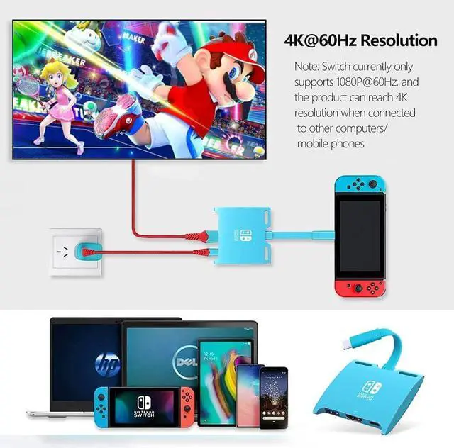 NOTE: Because the switch itself only supports 1080P output, it cannot reach 4K. It is 1080P@60Hz for Nintendo Switch.