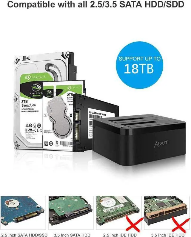 Excellent CapacityUSB 3.0 Dual Bay External Hard Drive Dock built for 2.5''&3.5'' SATA I/II/III HDD/SSD support up to 18TB capacity.
