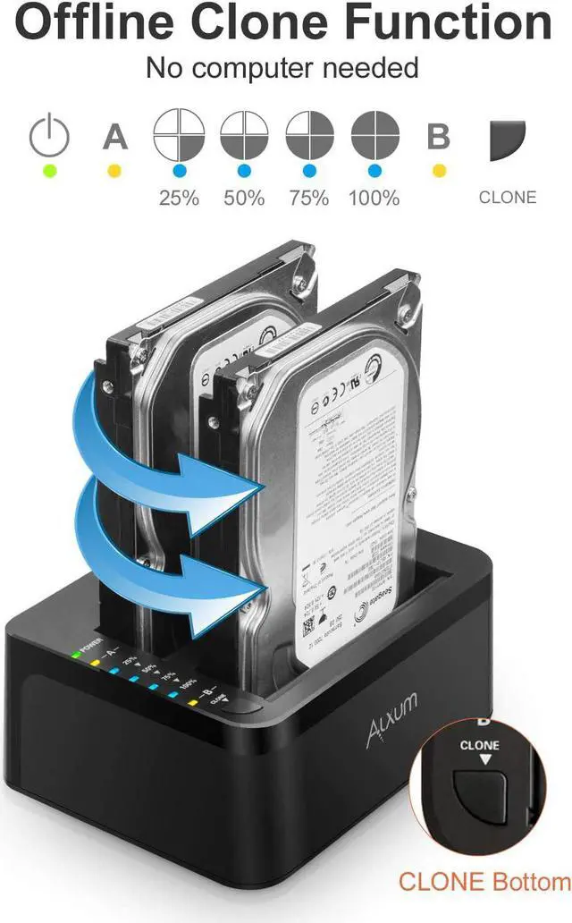 Hard Drive DuplicatorSupport Online Data Duplicator and Offline Clone Mode, plug and play, no drives needed. Alxum Hard Drive Cloner is easy installation