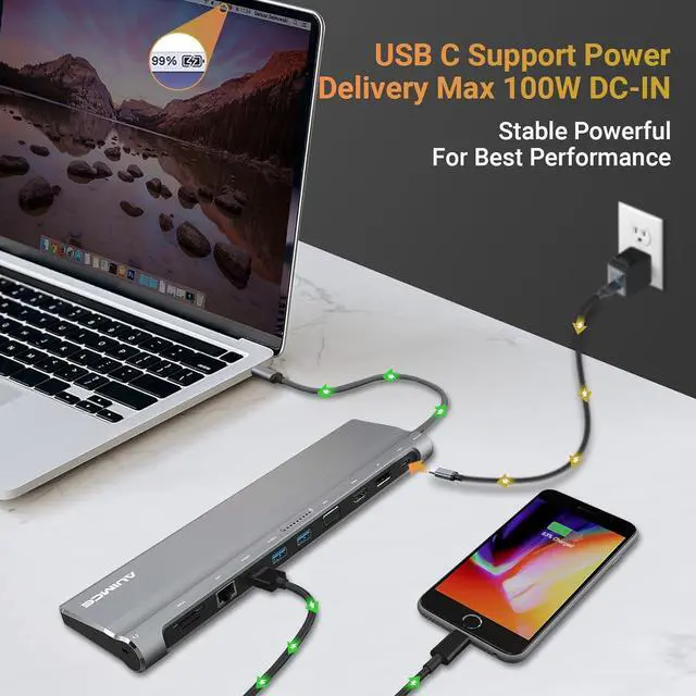 Support max 100W charging for your laptop when used with a USB-C power adapter (not included).