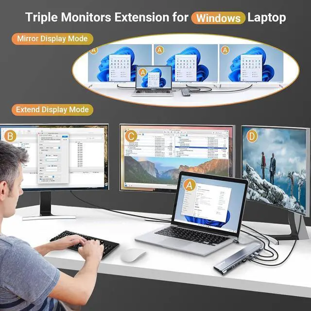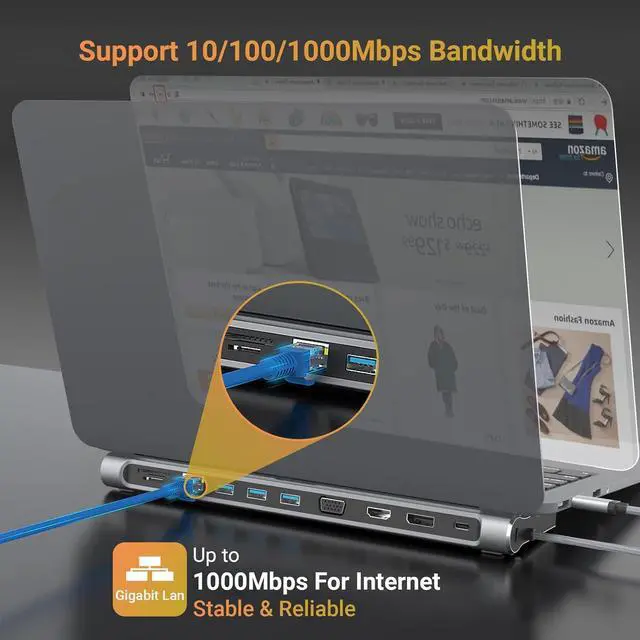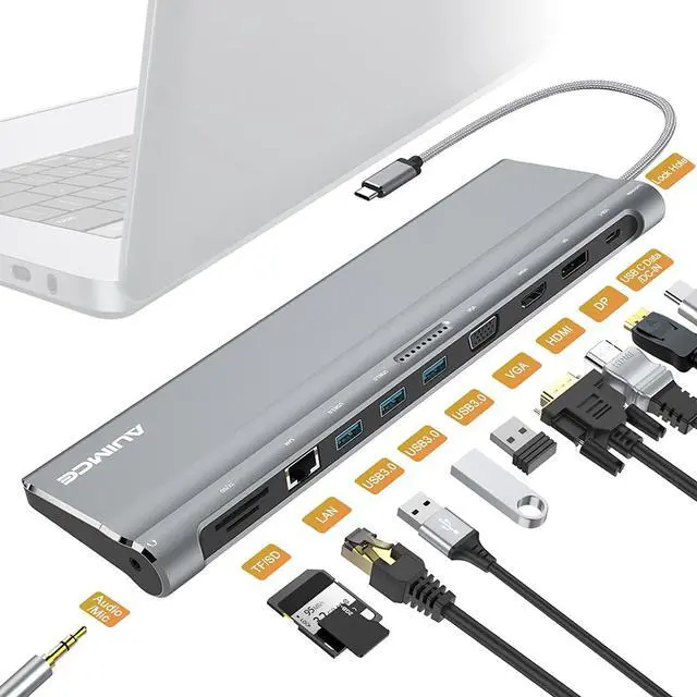 12-in-1 docking station, helps extend 3 monitors simultaneously through HDMI, DisplayPort, and VGA port (4K@30Hz for HDMI/DP port, 2K@60Hz for VGA port), a great laptop accessory for your USB-C or Thunderbolt 3/4 Laptops, support 4K Dual Monitors for HP/Lenovo/Dell/ASUS and Mac OS Laptops.