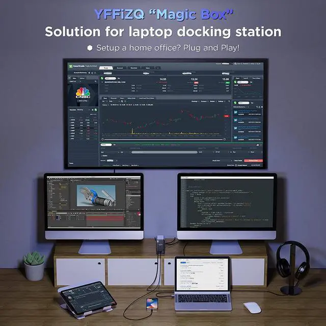 You can use YFFiZQ "Magic Box" to connect everything imaginablythis USB-C Dual Multimedia Docking Station is an ALL-IN-ONE solution to connect all your peripherals.I