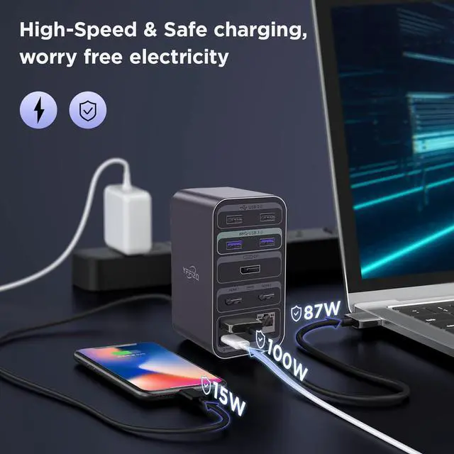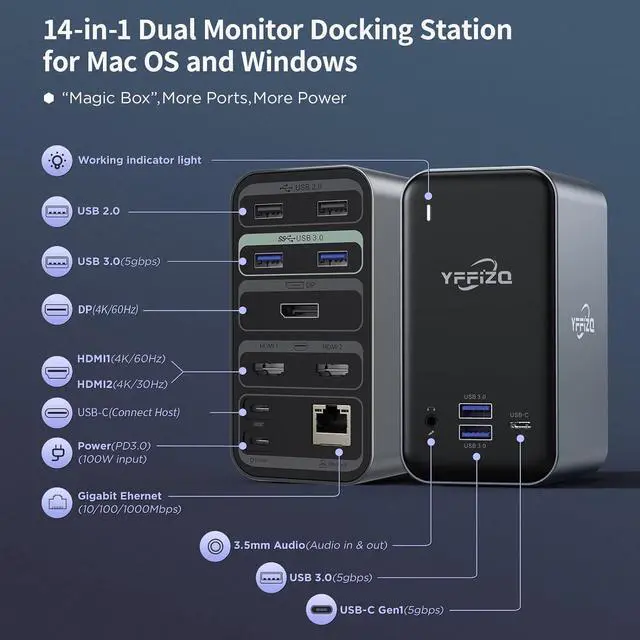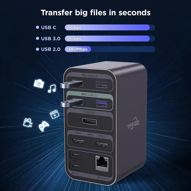 Next page of related Sponsored Products YFFiZQ "Magic Box" is the best solution to increase efficiency in your daily work and home office YFFIZQ USB docking station is the best choice for modern and efficient office and home work Different ports with multiple functions 14 ports in 1 Docking Station The expansion and mirror modes allow you to enjoy different technological effects Transfer Files in Seconds