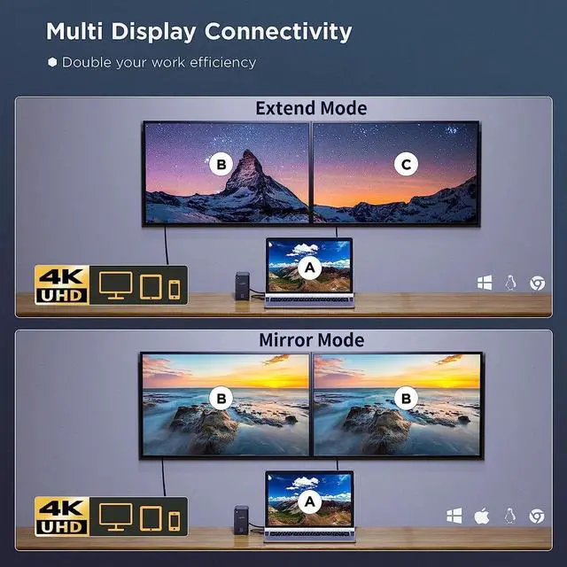 deal for home office, stock investment,design,games,and online education. Just plug and play, no extra drivers or installation required,you can create a powerful workstation to improve work efficiency.