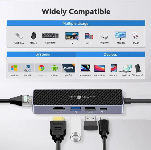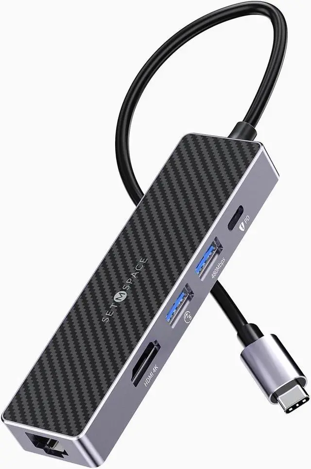 Brand SETMSPACE USB C Docking Station, SETMSPACE Laptops USB C 3.0 HUB, 5 in 1 usb c hub ethernet 4K HDMI, PD, USB A 3.0 5Gbps,USB 2.0, 5.1inches Cable, USB C Docking Station Laptops and Other Type C Devices.