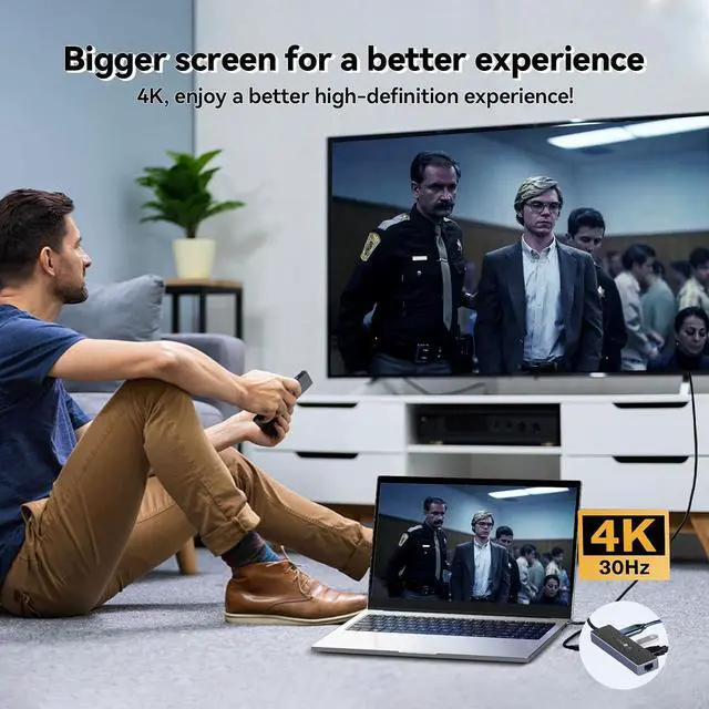 High Definition QualityThe USB C docking station provides lifelike 4K 3840 x 2160@30Hz HDMI images for an immersive 3D resolution experience. With advanced chips and strong anti-interference, enjoy smooth and delay-free screen performance, perfect for streaming, gaming, and video editing.