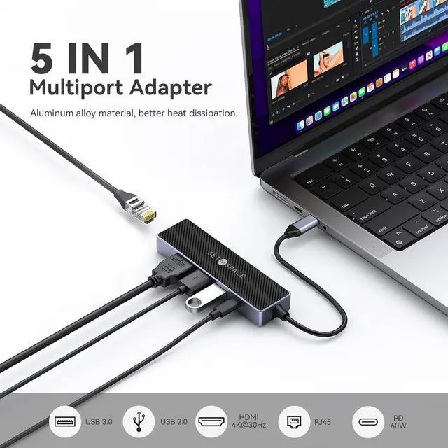 5 in 1 Docking StationMade of aluminum alloy material, this intelligent USB C Adapter combines all the features you