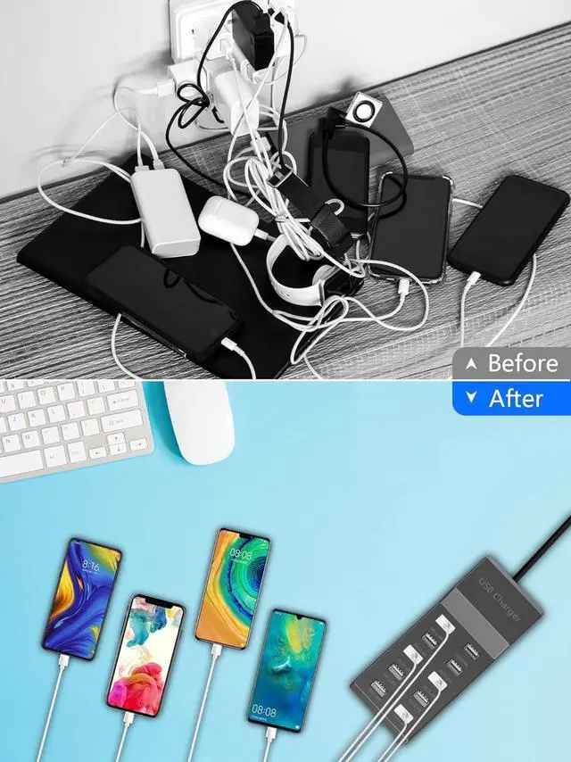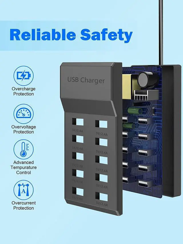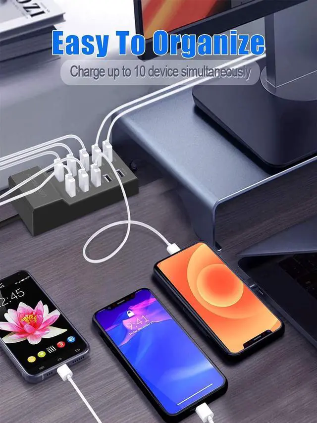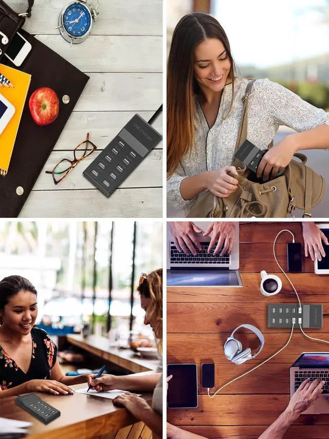 USB Charger Blocker 10-Port USB Charging Hub, 50W Multiple USB Charging Station for Multiple Devices Smart Phone Tablet Camera Watch