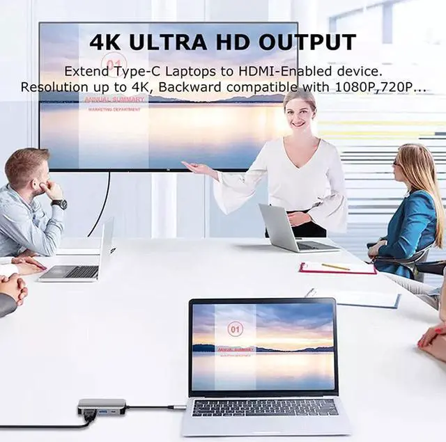 HDMI Port for 4K@30HZ UHD Visual FeastThe HDMI port of this hub supports up to 3840*2160P@30HZ and supports HDMI 1.4 specification, downward compatible with 1080P and 720P. Mirror or extend your screen with the USB Type C to HDMI Hub directly stream 4K@30HZ Ultra HD, Full HD 1080P, or 3D video to HDTV, Monitor or Projector. You could enjoy movies with your family on a bigger screen, presenting you a vivid 3D visual feast, or making a vivid presenting in a meeting.