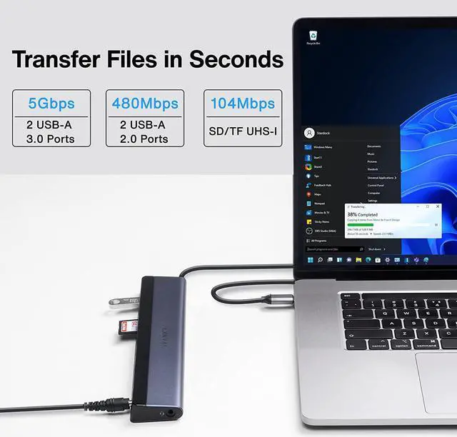 12-IN-1 Ports Expand Your Workstation EfficiencyThis 12-in-1 USB-C docking station is equipped with 12 ports, including 2*HDMI 2.0, 1*18W PD USB-C 3.0, 2*USB-A 3.0, 2*USB-A 2.0, 1*Gigabit Ethernet, 1*3.5 mm Audio, 1*SD, 1*microSD (TF). This laptop dock expands your workstation to vastly improve efficiency while working from home. Note: USB PD port is only for charging.