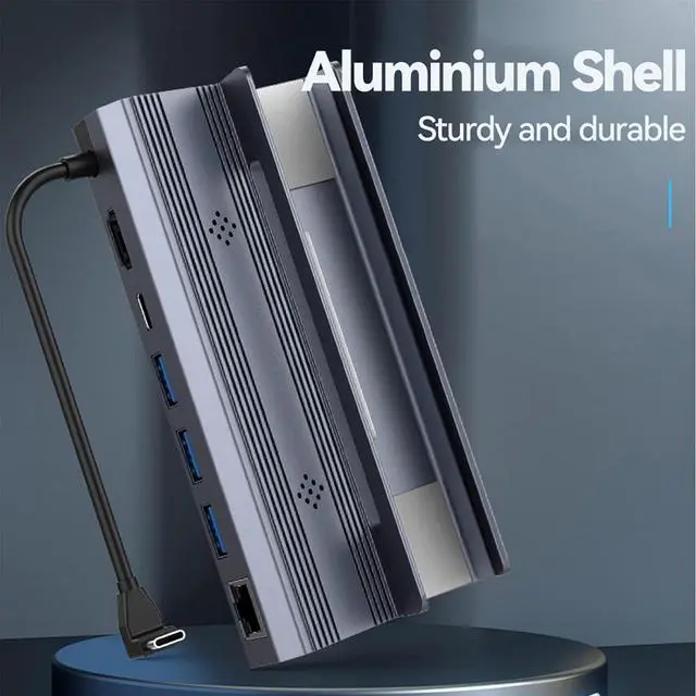 Made of premium aluminum alloy, this dock offers 4K@60Hz video output, 3 USB3.0 ports, a 1000Mbps Ethernet adapter, and Type-C PD charging capabilities.