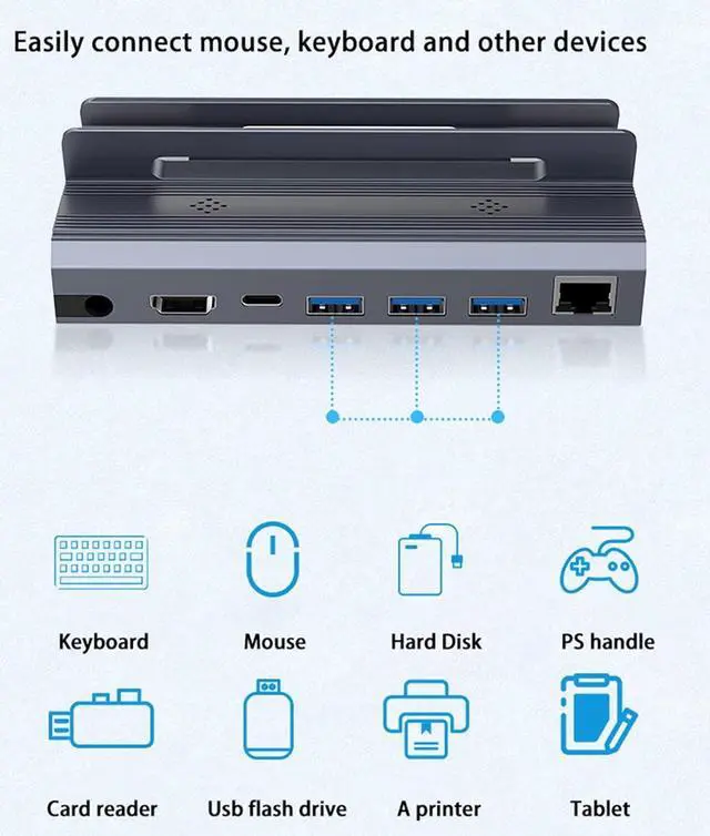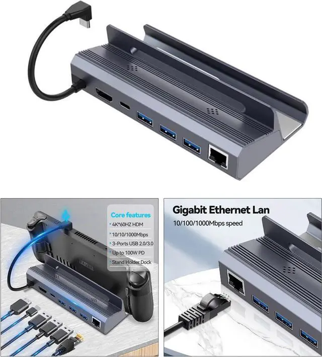 For Docking Station Stand 6-in-1 Hub Base Type-C To RJ45 Ethernet 4K60HZ USB3.0 Game Console Holder Docking Station Stand