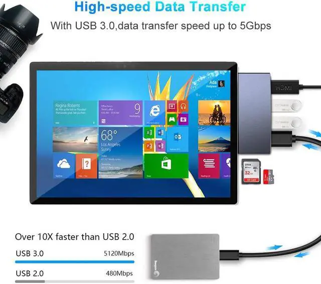HIWEAL Surface Dock Adapter with 3 USB 3.0 port, speed up to 5Gbps,10X fast than USB 2.0 hub. Transfer videos and images just in seconds,saving your time.