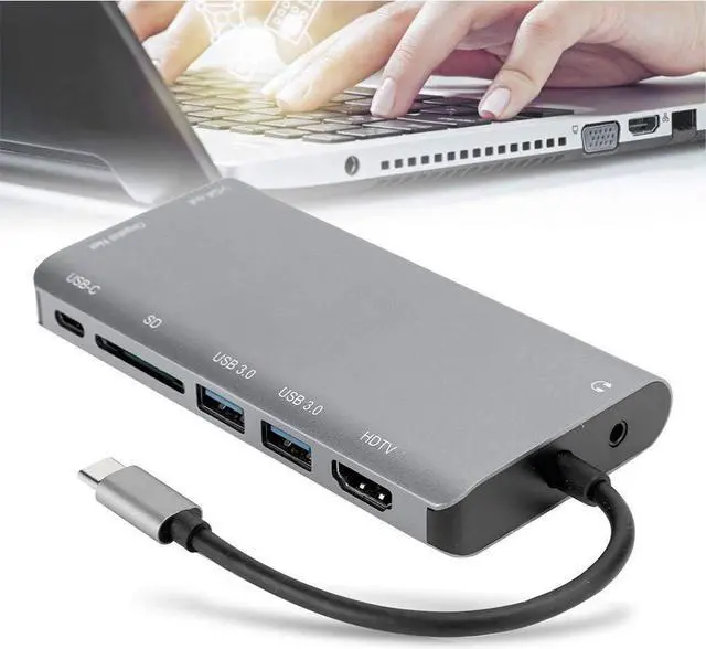 4. And typeC multifunctional docking station is with USB3.0 x 2 / memory card x 1 + HDMI / VGA + audio + RJ45 + Typec (power delivery) port.