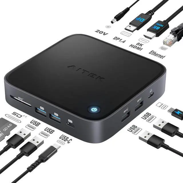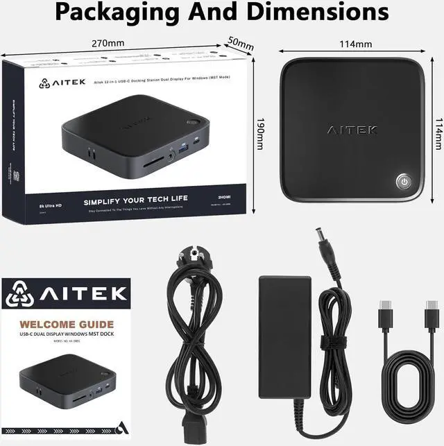 Aitek USB C Docking Station: 12-in-1 Dual Monitor Display Windows MST Dock with 8K HDMI 2.1 DisplayPort 4 USB 3.0 SD 4.0 Card Reader RJ45 Ethernet Power Delivery Charge for Laptop