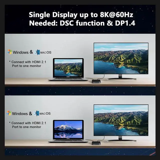 Dual Monitor (HDMI+DP) HDMI 2.1 Up to 8K Resolution HD