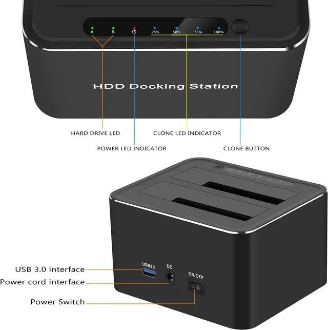 Supports 2 hard disks; supports offline copy; can only clone from drive a to drive b, please ensure that the memory acity of drive b is larger than the drive a; online cloning is not supported.