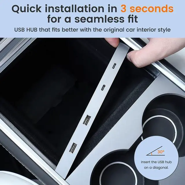 UPGRADE YOUR EXPERIENCEThis hub help you get rid of the inconvenience of original position of Tesla console USB hub and the slow charging rate, it brings convenience to both driver and passengers.