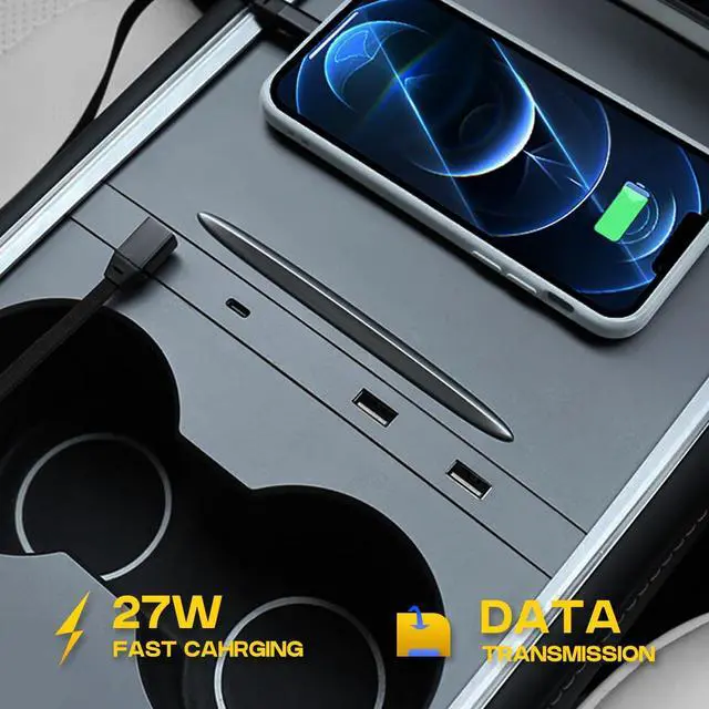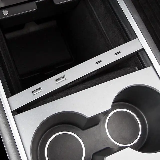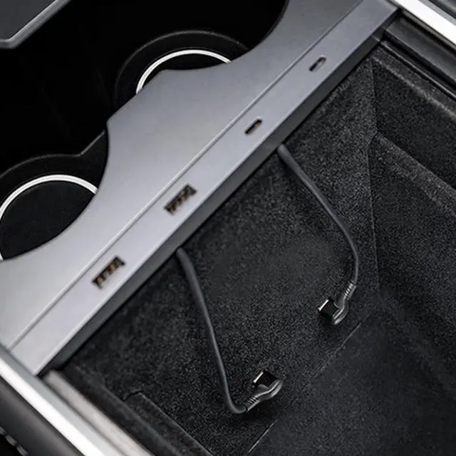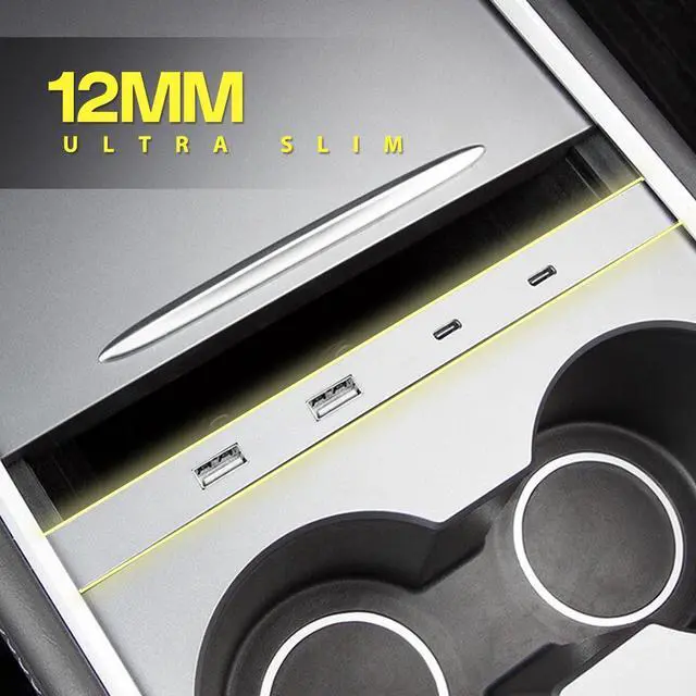 Console Cable Organizer, Tesla Center Console Double Port USB Charging Cable Organizer Slim
