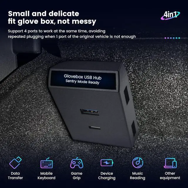 4-in-1 Multiport Glove Box USB Hub Docking Station for Tesla Model Y Model 3 2021 2022 2023