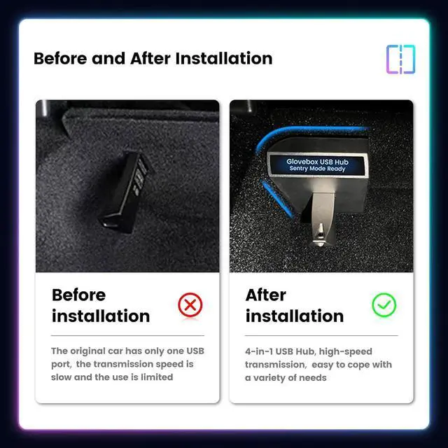 Multi-FuntionThis glove box USB hub is not only for Tesla model Y model 3 2021 2022 2023, but also for any USB device, no need to install driver, compatible with car USB, windows, Mac and