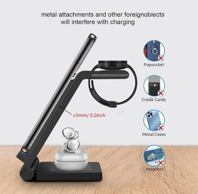 Cases made of metal, attachments such as magnets, cards, grips will interfere with charging.