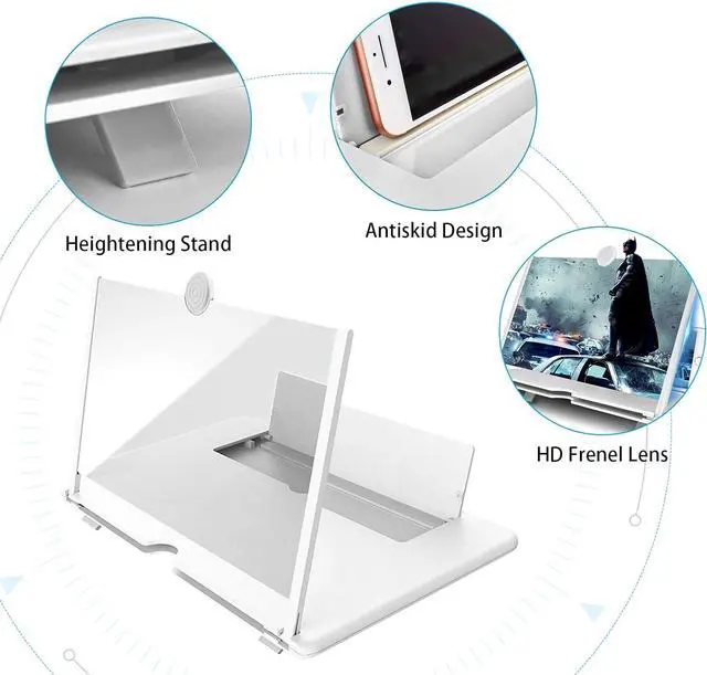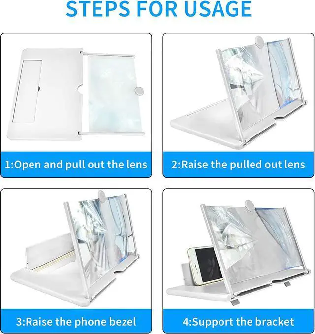 HD screen magnifier Storage type rotating folding design. Super slim when folded and also can be carried around in your bag. Suitable for indoor, camping, journey, leisure, anywhere and etc.