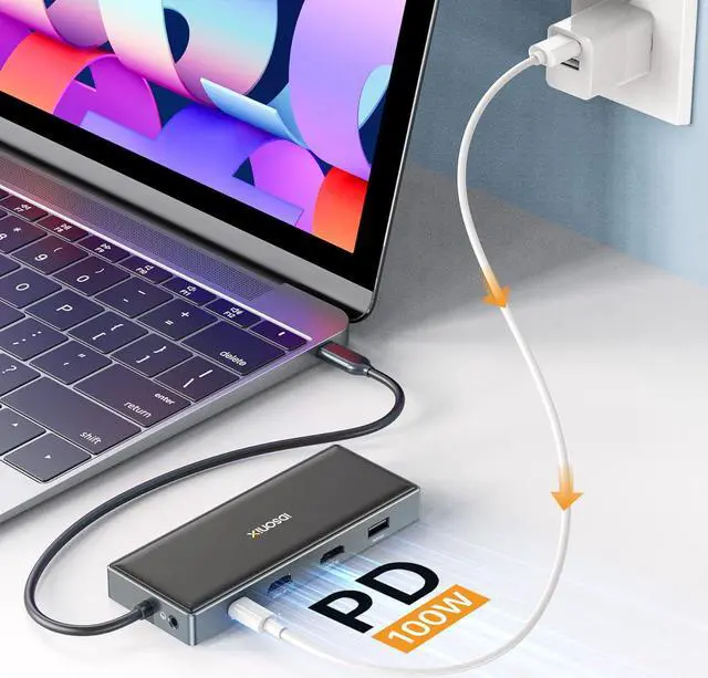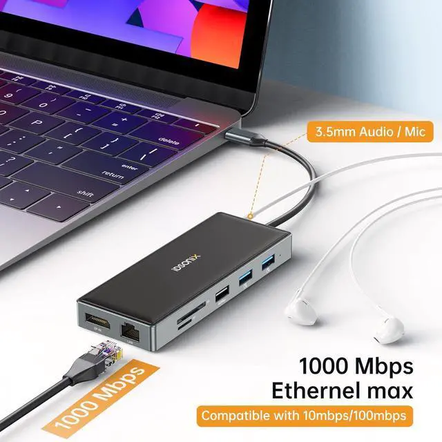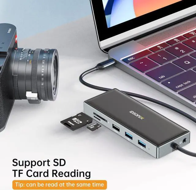 10Gbps Data Transfer Speed - Built-in SD/TF card reader, USB-A3.1*2+USB-A2.0*2 4-port multi-function USB c hub docking station.It can meet the wide application of 10Gbps high-speed data transmission and large-scale data transmission at the same time, can easily access files in SD/TF memory car