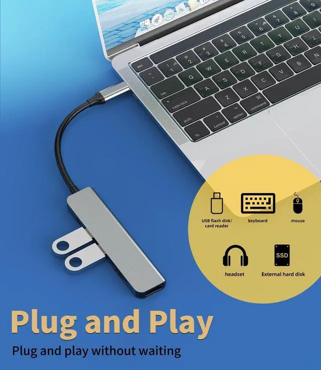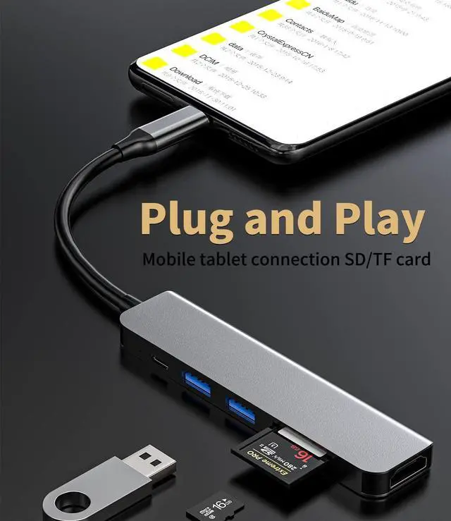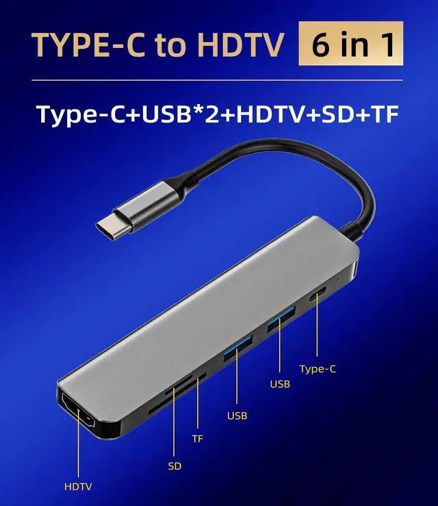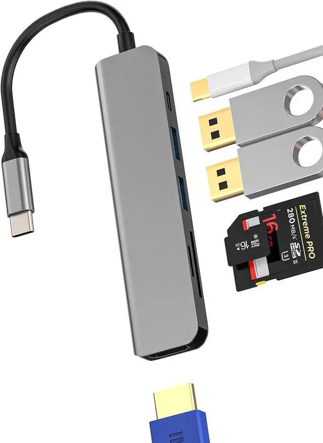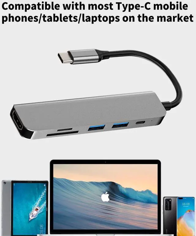 6 in 1 HubAdd 1 HDMI port, 2 USB-A ports, 1 usb c charger port, 1 micro SD card slot, 1 SD card slot to your USB-C laptop all from a single USB-C port.Suitable for all Apple's USB-C interface devices such as iPhone 15, iPad 10, Air4, Air5, mini6, (2018/2019/2021/2022/2023Pro 11/12.9 inch)