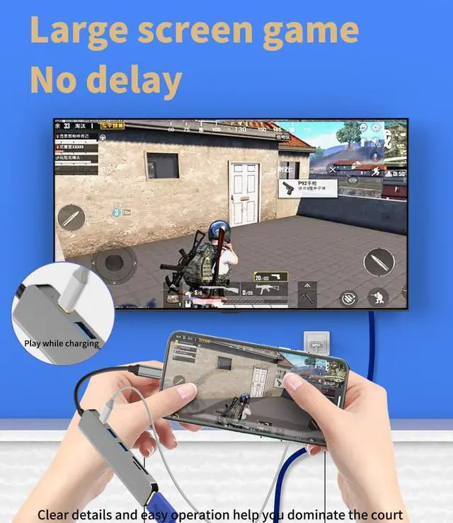 4K Video USB-C to HDMI AdapterEnables you to mirror or extend the display of your phone/laptop to your TV, projector or monitor in up to 4K UHD (3840x2160@30Hz) resolution. Help you enjoy nice pictures on movies and work.