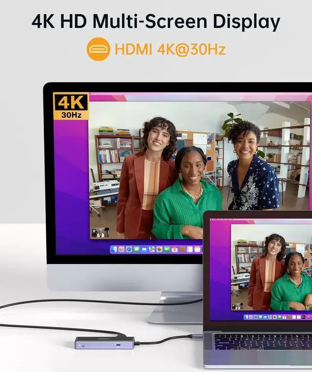 4K UHD HDMI OUTPUT: The macbook usb c hub can easily achieve dual-monitor displays for your USB C laptop, Single-use HDMI max up to 4K@30Hz, or Single-use VGA max up to 1920*1080P @60Hz, both can support mirroring or extended models. Please note: while connecting HDMI and VGA to extend 2 displays, the display output will be maxed 1920*1080P@60Hz, support mirror model, don't support extended model.