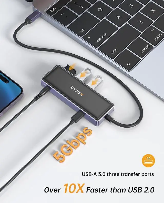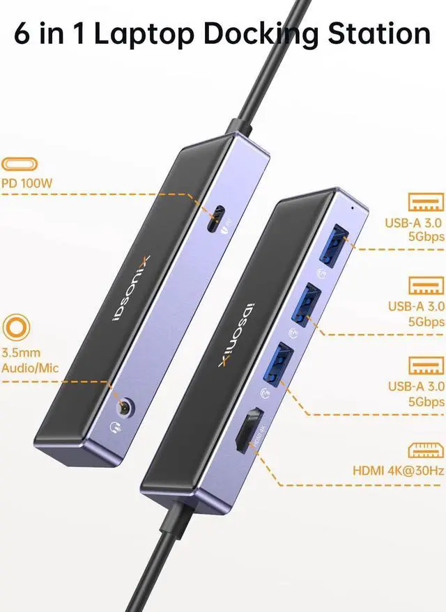 USB C Docking Station for Laptop - iDsonix 6 in 1 USB C Hub with 4K HDMI, PD 100W, 3 USB 3.0 5Gbps, 3.5mm Audio/Mic for MacBook Pro/Air HP Dell Laptops and More