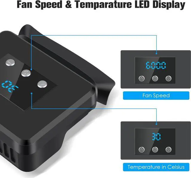 • LED DISPLAY WITH FAN SPEED & TEMPERATUREThe digital LED display shows both the current rpm of the fan and the temperature of the air exiting the console in degrees celsius. There are three buttons for easy control: Increase the fan speed, power on/off the fan, decrease the fan speed.