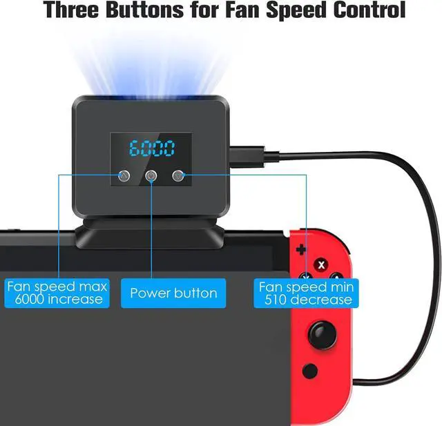 • ADJUSTABLE FAN SPEEDThe adjustable fan speed from min 510rpm up to max 6000rpm of the radiator for Nintendo Switch is perfect for heat-exhaust and ventilation. When the fan speed is under 2400rpm, it is nearly no noisy, unless the fan speed is above 2400rpm, it will produce some fan spinning sound.