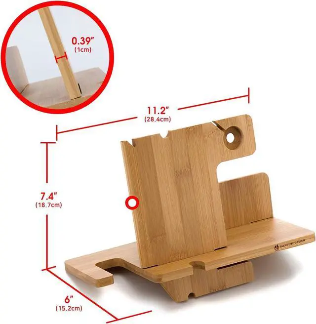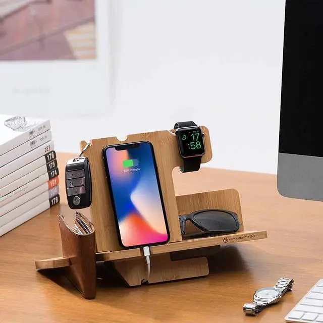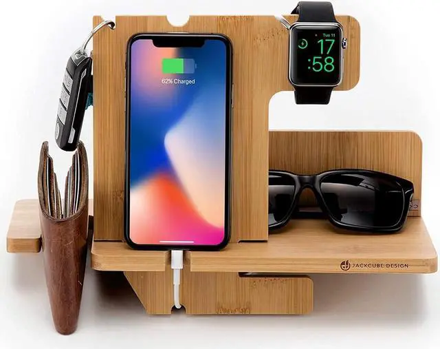 JackCubeDesign Wood Docking Station Nightstand Organizer Key Holder Wallet Stand Watch Gift Anniversary for Men Dad Father Birthday Graduation Gadgets Compatible with iPhone iWatch AirPods - MK242A