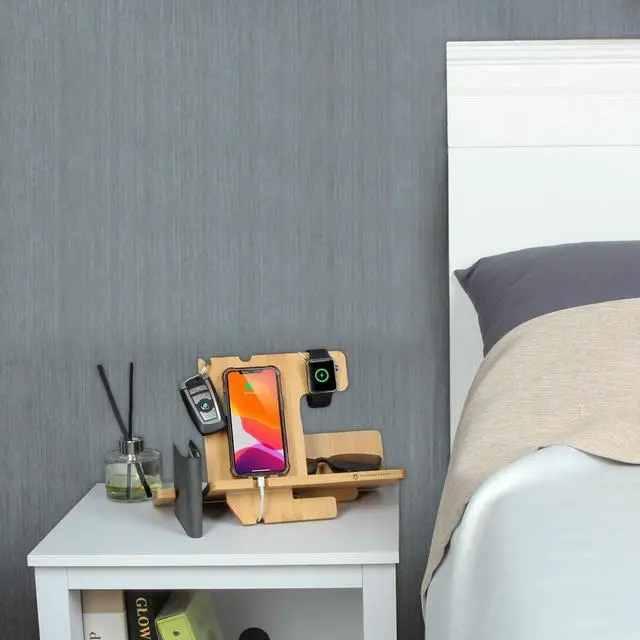 PERFECT WAY TO ORGANIZE YOUR APPLE IPHONE AND WATCH It has a hole for the iphone charger and a nice space for the watch charger.