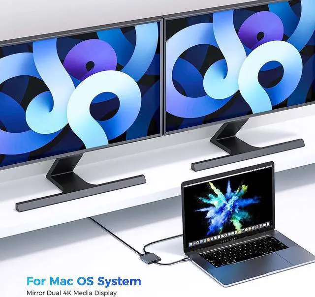 ( Important Note: As Apple company itself limited, for Mac OS devices use in extend mode, the image on the two external screens will be the same.)