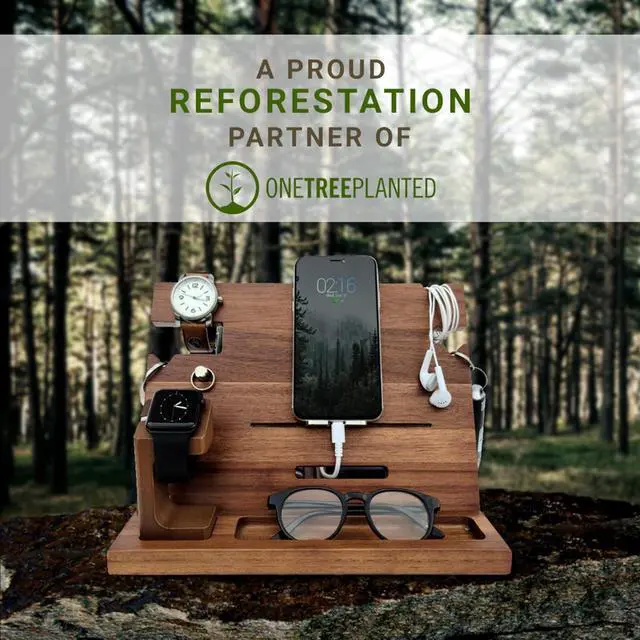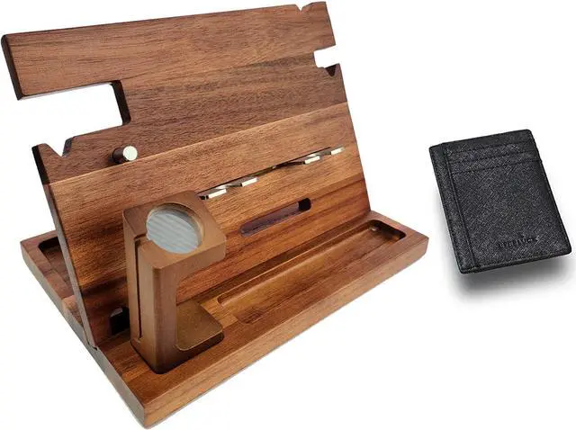 Our wooden docking station includes a bonus RFID blocking wallet made of vegan leather that will keep your cards and personal information protected.