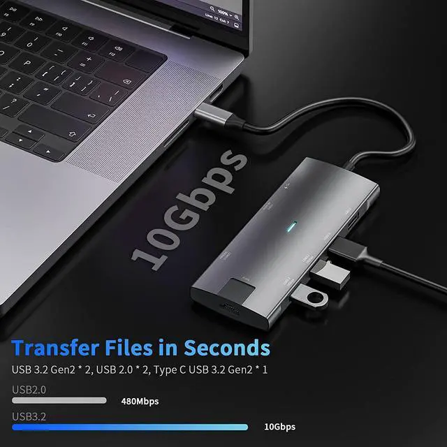 Type C USB3.2 Gen2 100W Power DeliveryEISHAB USB C Docking Station USB-C 3.2 gen 2 data port support data transfer speed up to 10Gbps, perfect for connecting your Type-C SSD drives, flash drives, and peripherals.