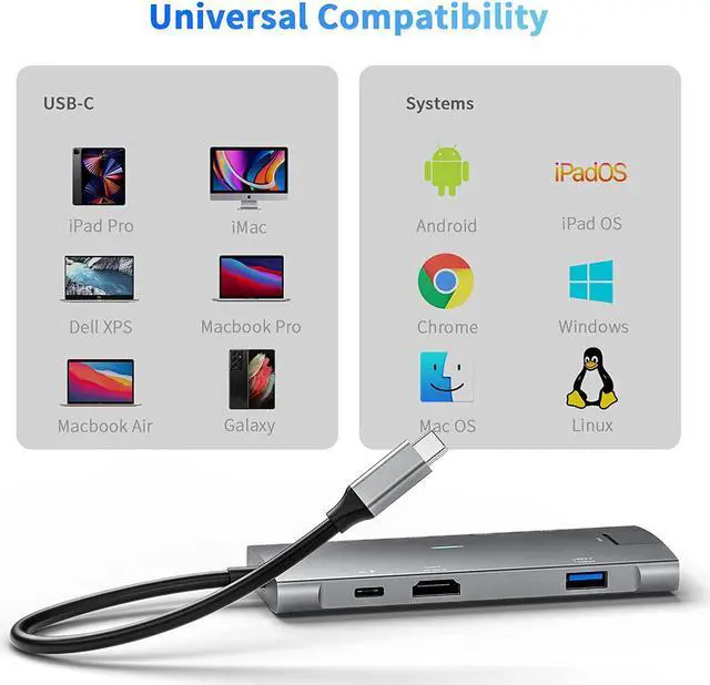 Universal CompatibilityCompatible with MacBook Pro 16'' 14'' 13'' M1 2021/2020/2019/2018/2017/2016, MacBook Air 13.3'' M1 2020/2018, and also compatible for iPad Pro 11 12.9 2021 2020 2018, iPad Mini 6, iPad Air 4, Surface Pro 8/X/7/6/4/3/2017, XPS, Chromebook, Samsung, Dell, HP, Huawei and other USB-C devices. If you have any questions about product compatibility, please contact us and we will reply within 24 hours.