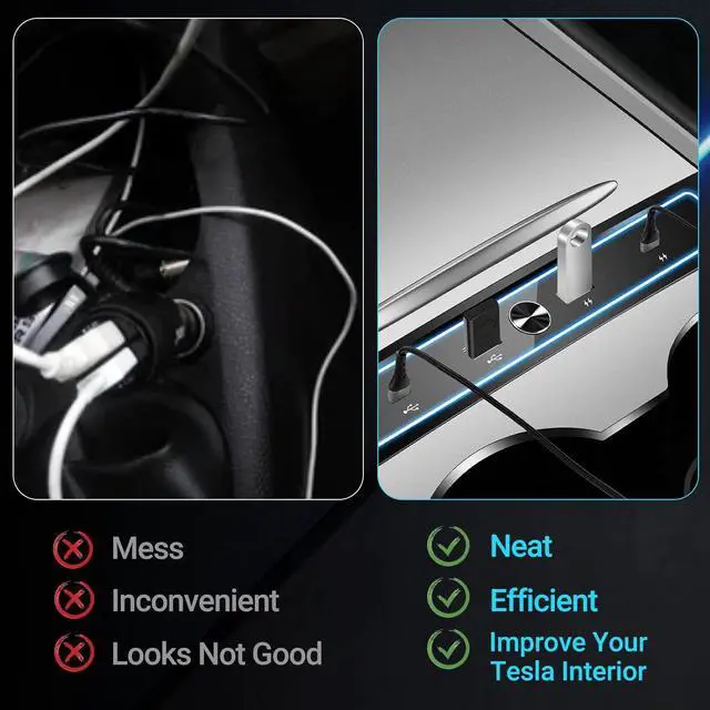 Easy to Install: Open the sliding cover of the central control, Place the usb hub accessories on the central control slightly inclined, and then plug the cable into the interface of the central control.Integrating seamlessly with the Center Console,It does not affect the use of the central control switch and storage box.