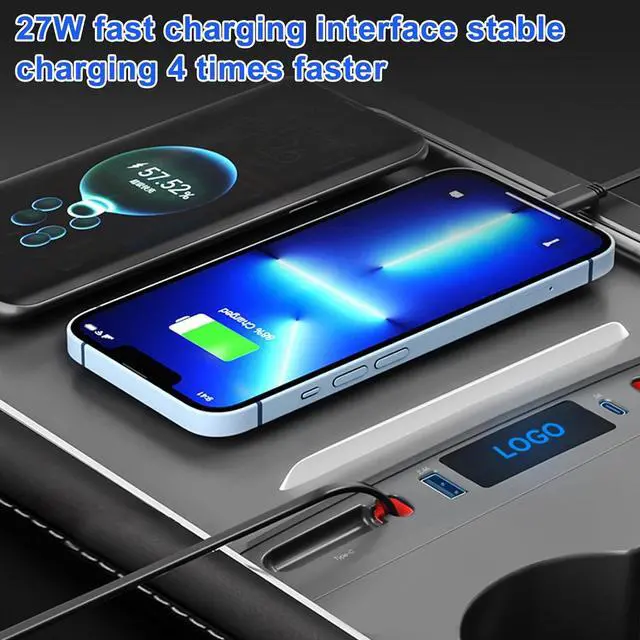 Certified SafetyISTATSO USB hub for Tesla model 3/y is made of high quality PC+ABS material, with an intelligent chip and car-grade circuit board. 2 retractable charging cables and 2 jack ends are functional, durable and strong.