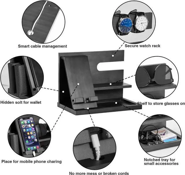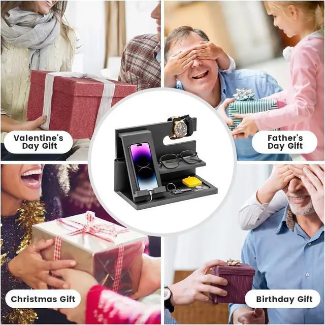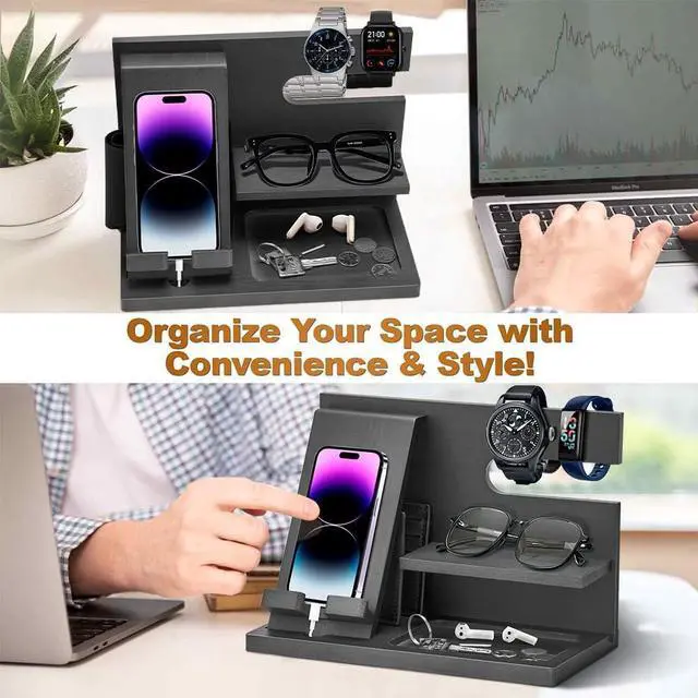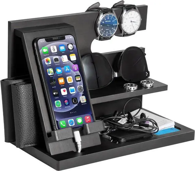 A meaningful gift for your loved one. Which, makes it the perfect gift for your father, boyfriend, son, or anyone you hold dear. Included is a phone holder, which is perfect for a newly engaged couple. This gift will organize anything, whether it is a desk or a night stand, it is also a brilliant docking station for phones and watches.