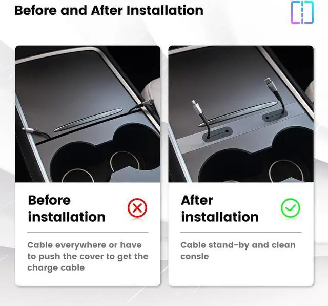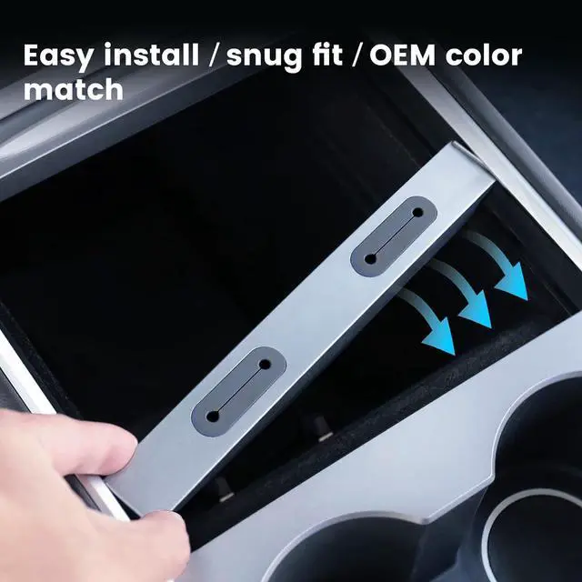 Great addition on Tesla Model Y 2021 2022 2023 and Tesla Model 3 2021 2022 2023,It fits flush in the console and matches the color of the console well,Looks like it came from the factory that way,Easy to place and helps keep charging cords organized!